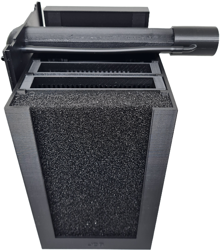 The JBA-H filter has been designed with caridina shrimp enthusiasts in mind. It is based on the HMF principle whilst also offering buffering through soil provisioned within the removable cartridges. This filter is an internal hang on. Four height settings ensure ample room is left for lids.